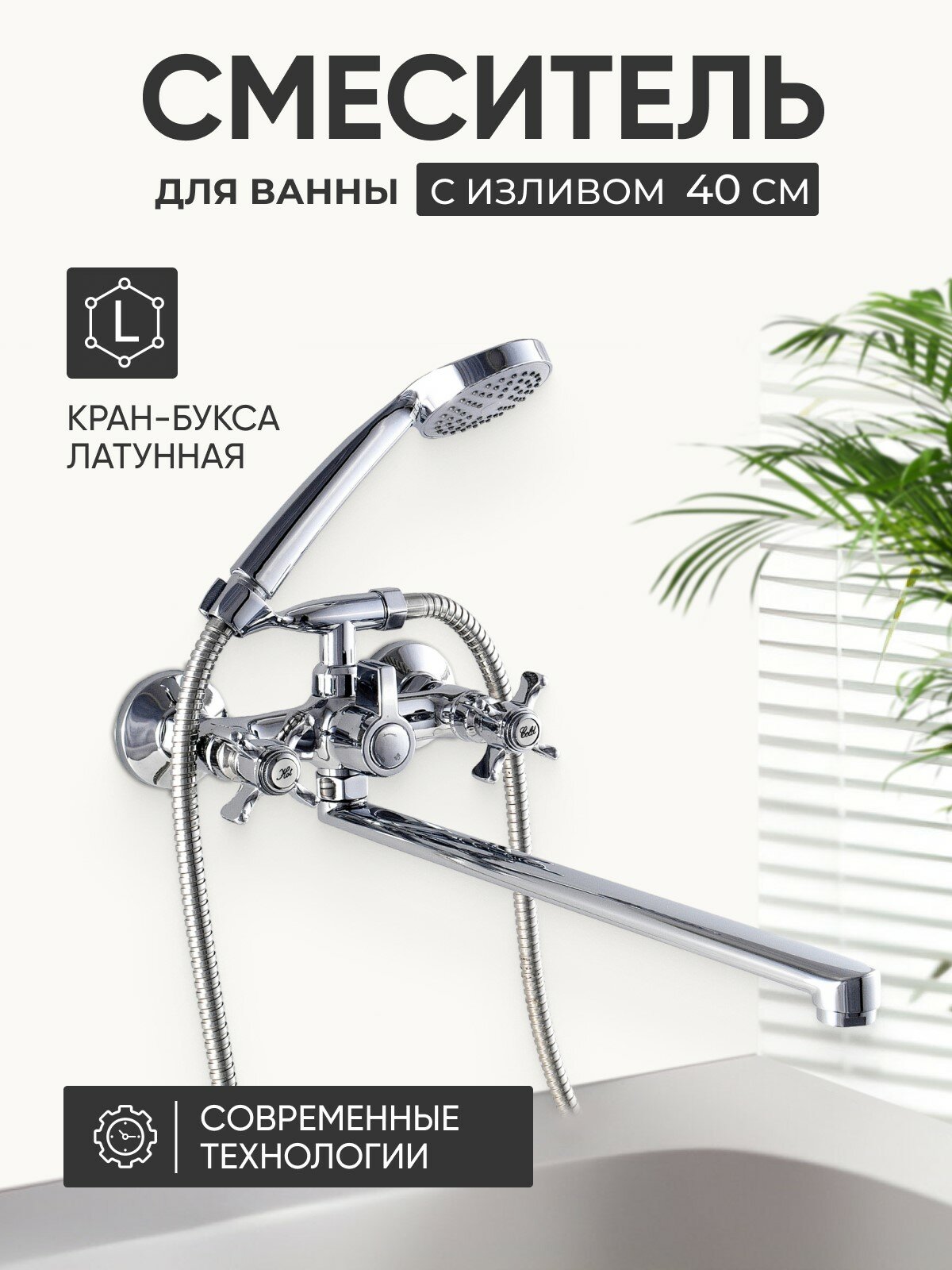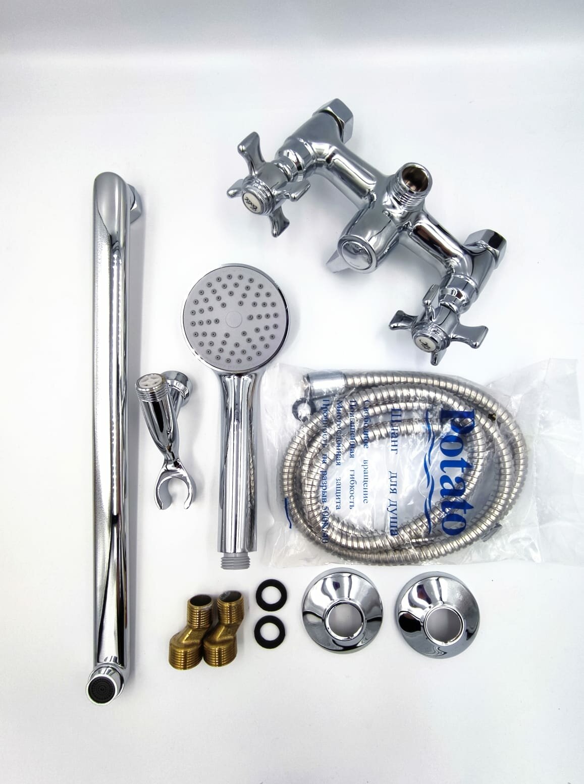 Смеситель для ванны с душем Potato P2362, длинный плоский излив 40 см, цвет хром интересное: