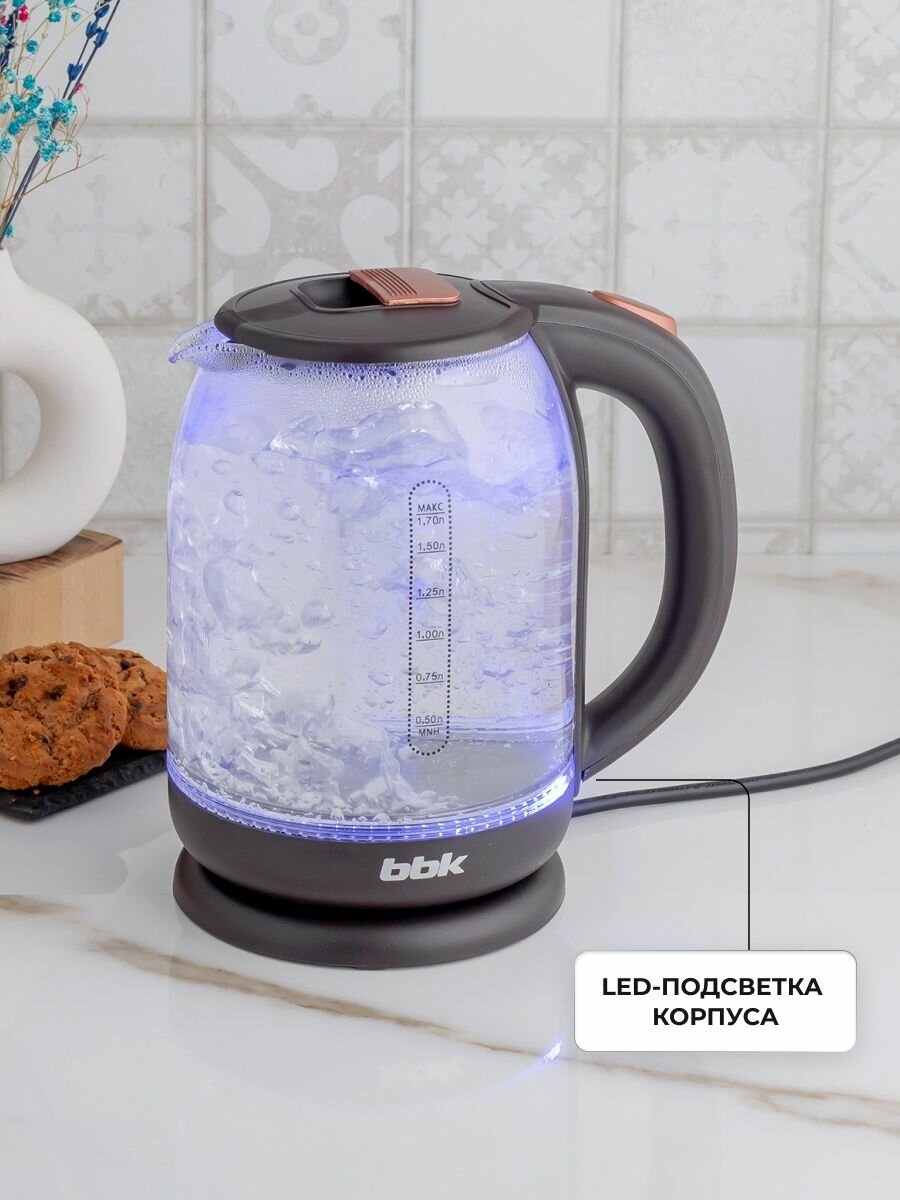 Чайник электрический BBK EK1727G коричневый, объем 1.7 л, мощность 1850-2200 Вт