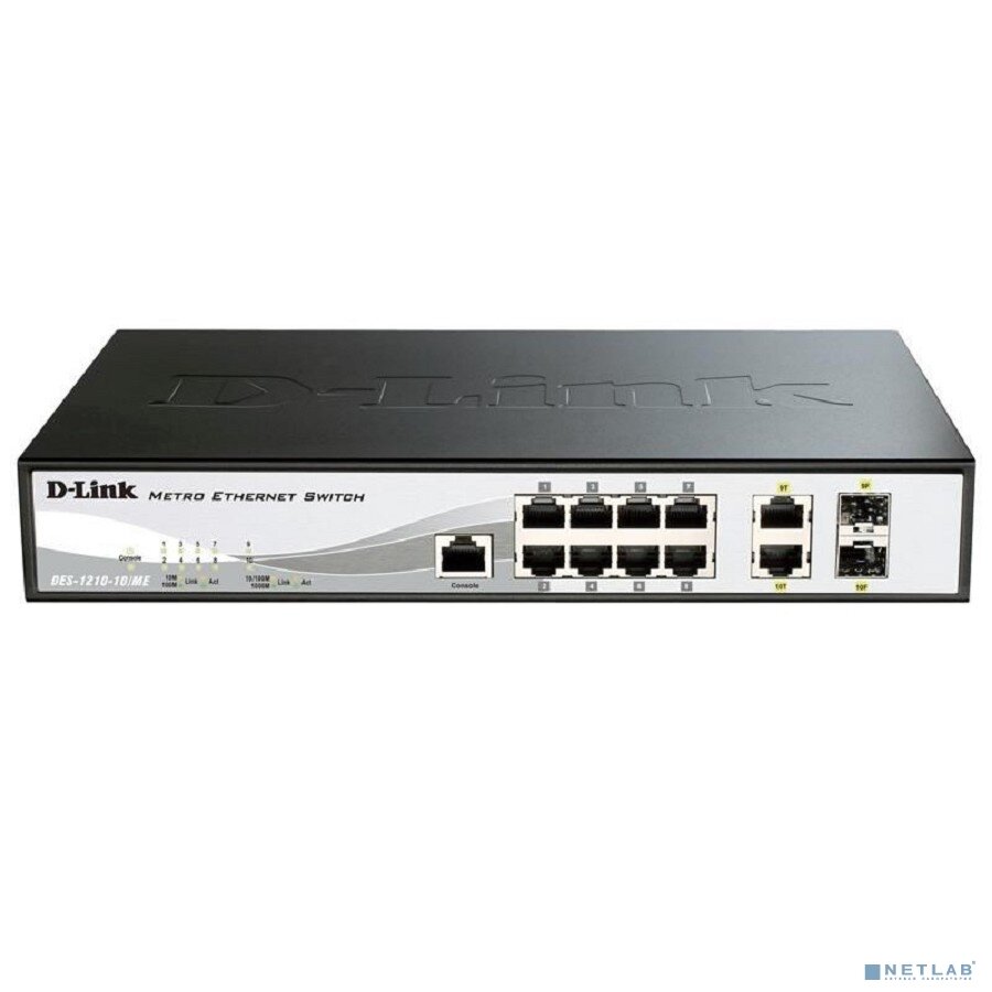 Коммутатор D-Link DGS-1210-10/ME/B2A 2 уровня с 8 портами 10/100/1000Base-T и 2 портами 1000Base-X SFP