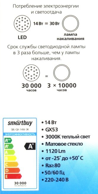 Ниже Вы можете прочитать отзывы на Светодиодная лампа Smartbuy SBL-GX-14W-3K, ознакомится с подробными характеристиками, посмотреть интересные обзоры и фотографии на Светодиодная лампа Smartbuy SBL-GX-14W-3K.