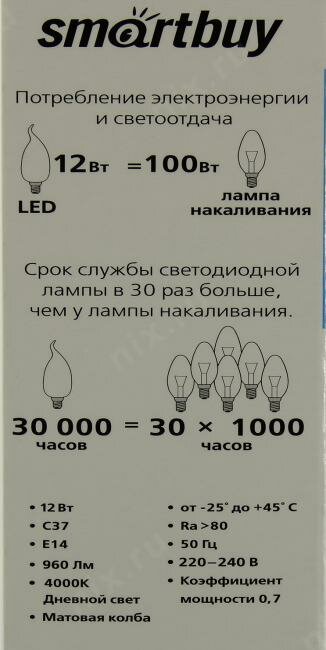 Светодиодная (LED) Свеча на ветру матовая Лампа Smartbuy-C37-12W/4000/E14 (SBL-C37Can-12-40K-E14)/100, цена за 1 шт интересное: