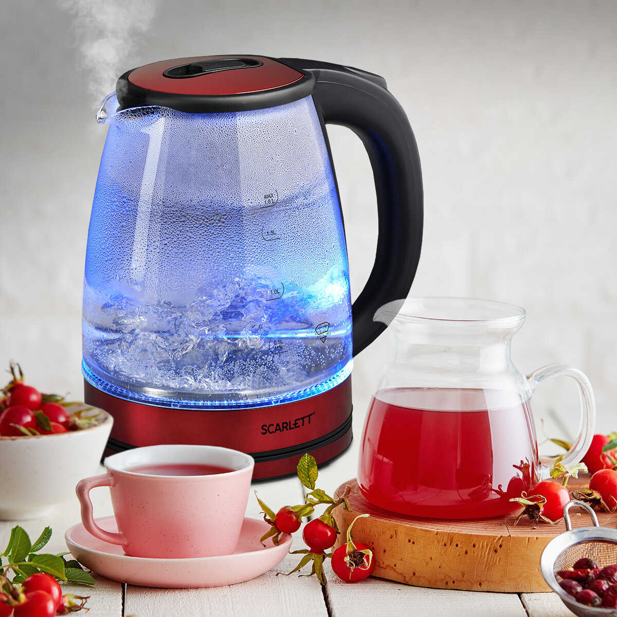 Чайник Scarlett SC-EK27G102,1800 Вт, 1.8 л, корпус-стекло, краcный