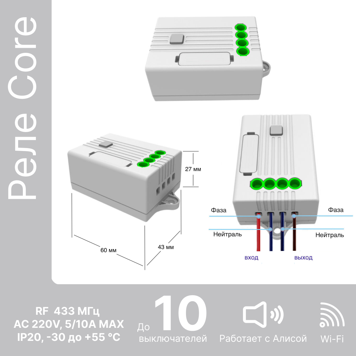 | Протокол связи Умного дома | RF433 / Wi-Fi |