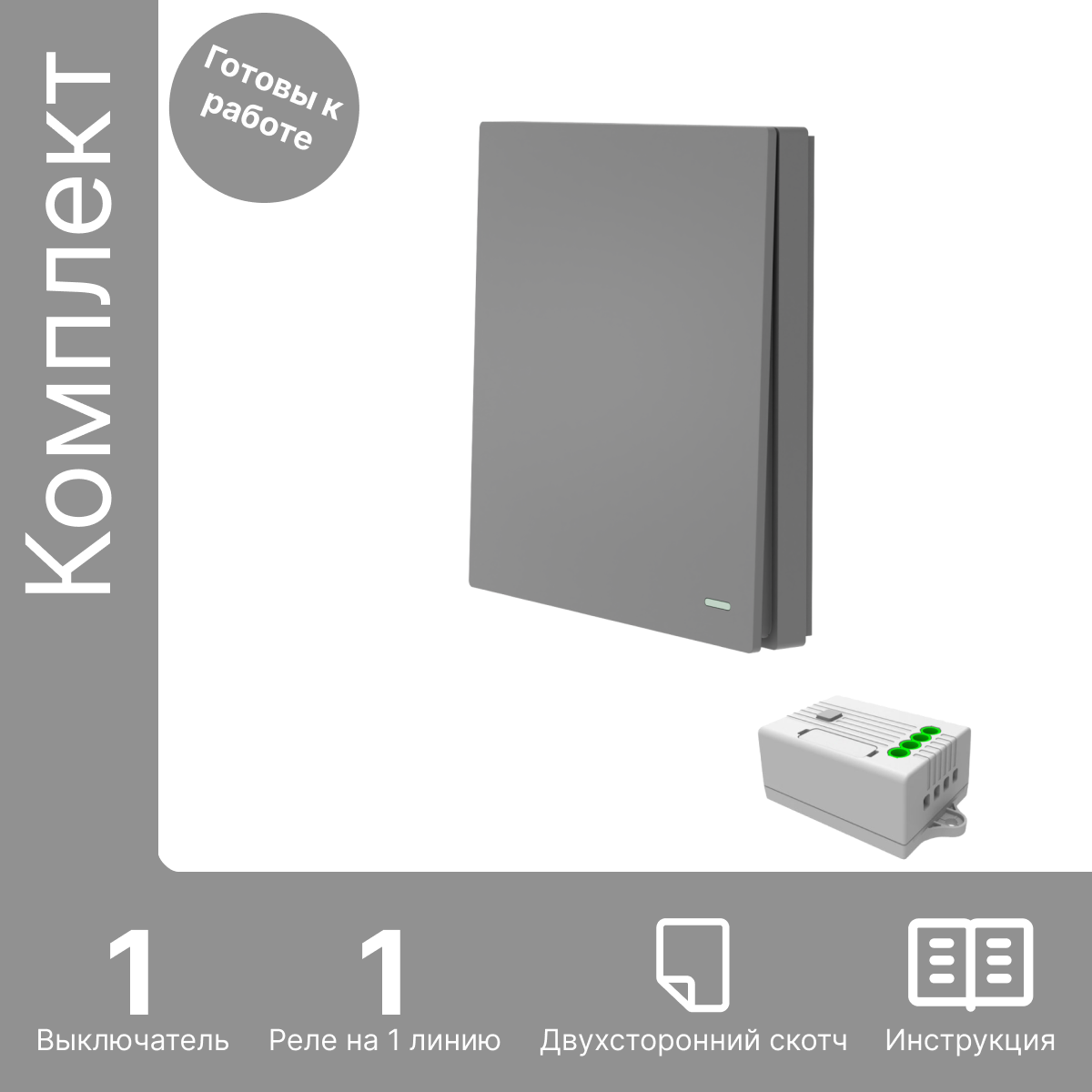 Купить Умный беспроводной выключатель GRITT Evolution 1кл. графит комплект: 1 выкл. IP67, 1 реле 1000Вт 433 + WiFi с управлением со смартфона, EV221110GRWF