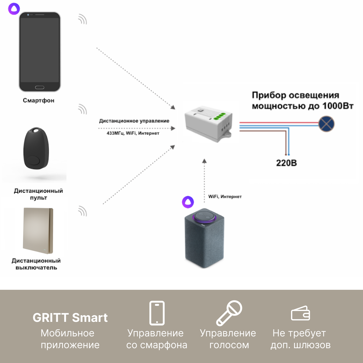 | Протокол связи Умного дома | RF433 / Wi-Fi |