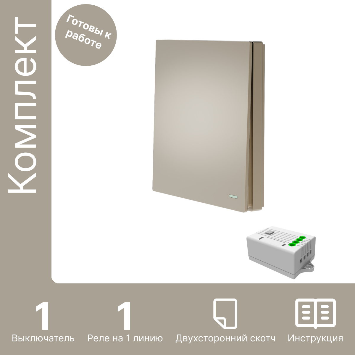 Купить Умный беспроводной выключатель GRITT Evolution 1кл. золотистый комплект: 1 выкл. IP67, 1 реле 1000Вт 433 + WiFi с управлением со смартфона, EV221110GWF