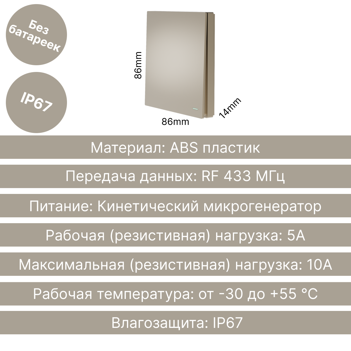 СохранитьУмный беспроводной выключатель GRITT Evolution 1кл. золотистый комплект: 1 выкл. IP67, 1 реле 1000Вт 433 + WiFi с управлением со смартфона, EV221110GWF интересное: