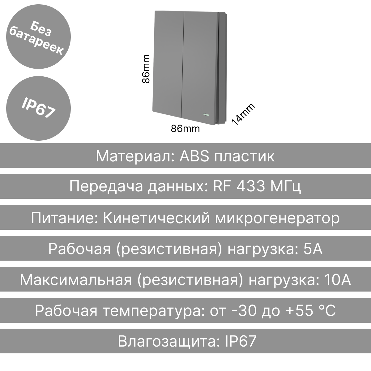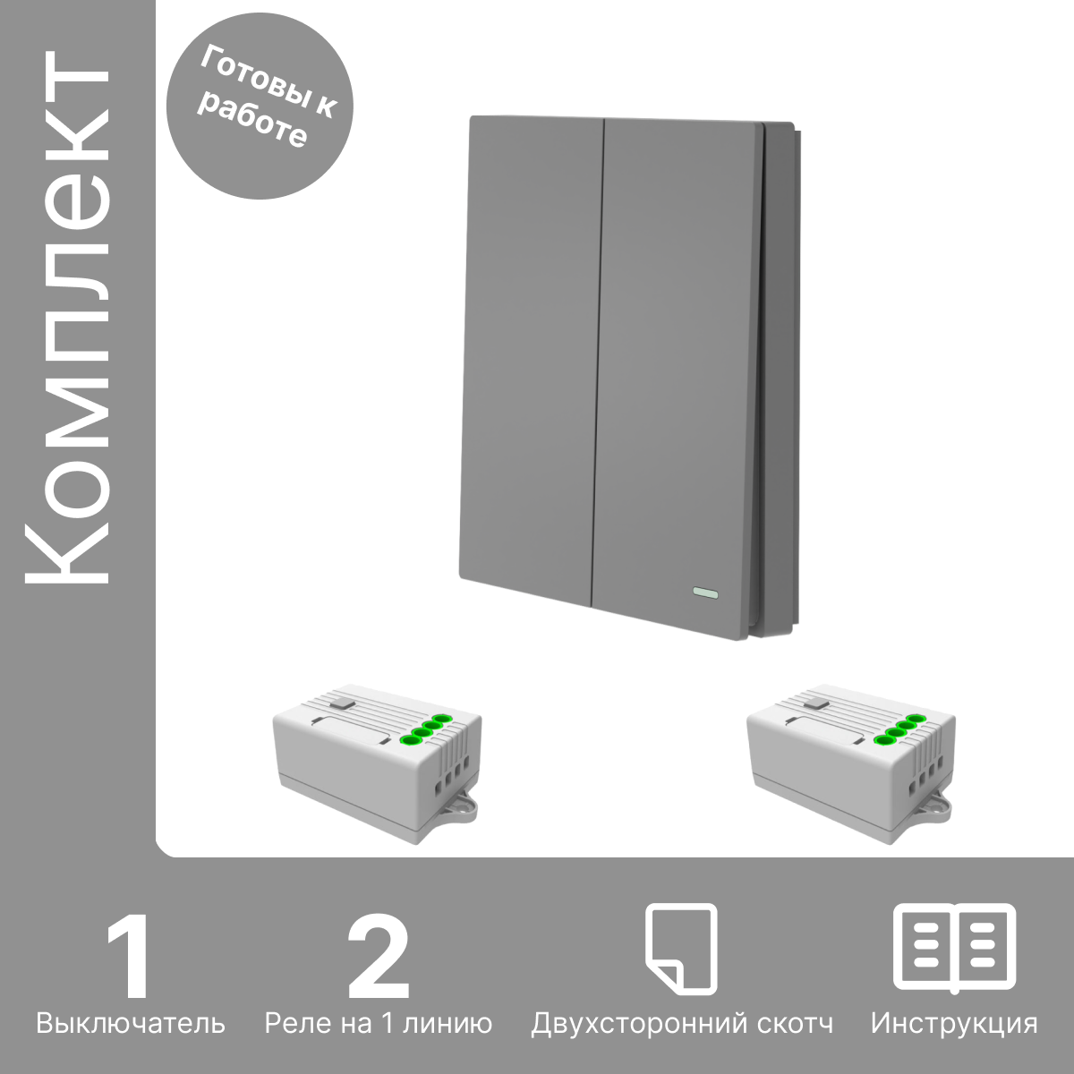 Умный беспроводной выключатель GRITT Evolution 2кл. антрацит комплект: 1 выкл. IP67, 2 реле 1000Вт 433 + WiFi с управлением со смартфона, EV221220BLWF