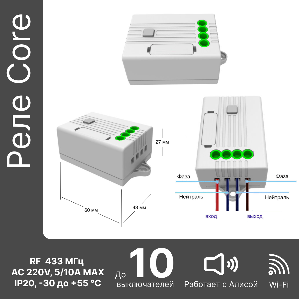 | Протокол связи Умного дома | RF433 / Wi-Fi |