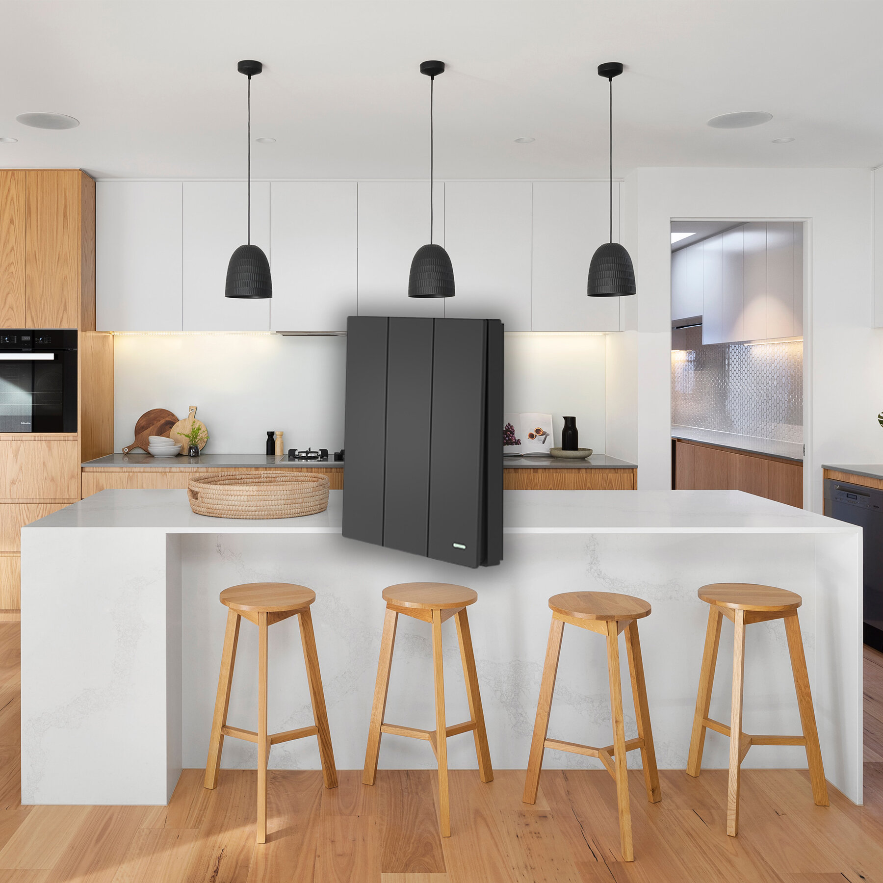 Купить Умный беспроводной выключатель GRITT Evolution 3кл. антрацит комплект: 1 выкл. IP67, 3 реле 1000Вт 433 + WiFi с управлением со смартфона, EV221330BLWF