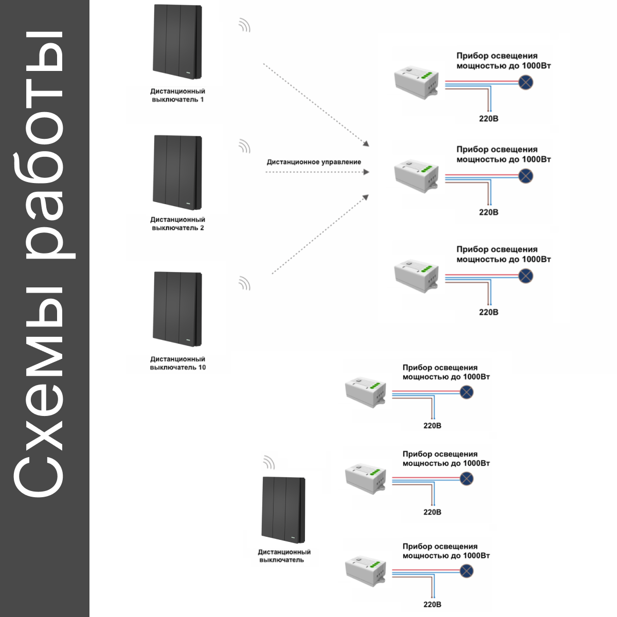 Умный беспроводной выключатель GRITT Evolution 2кл. белый комплект: 1 выкл. IP67, 2 реле 1000Вт 433 + WiFi с управлением со смартфона