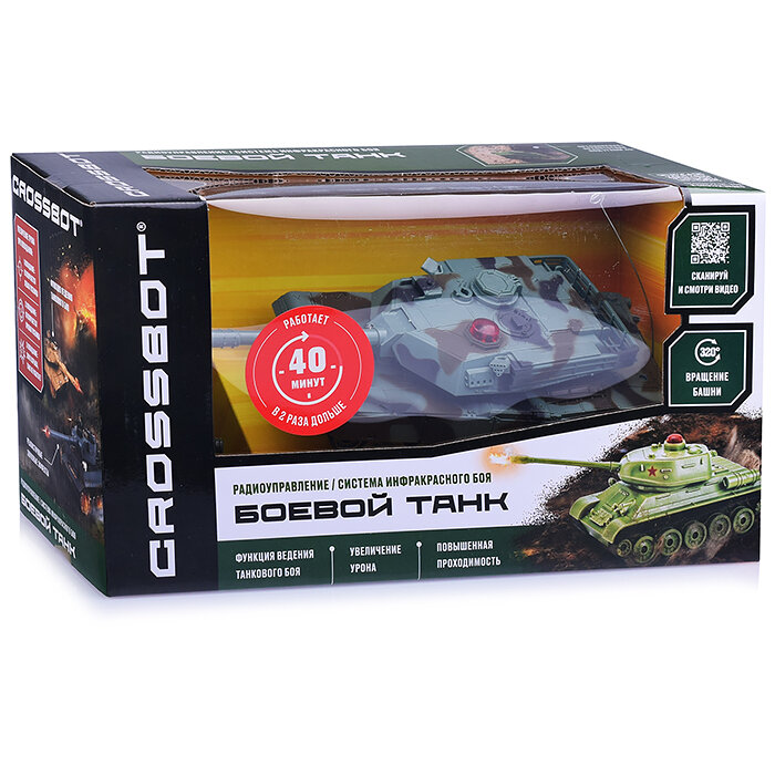 | Комплектация | танк: 1 шт., пульт радиоуправляемый, частота 27Мгц: 1 шт., аккумулятор NI-CD 600mah/3,6 V: 1 шт. USB-кабель для подзарядки: 1 шт., инструкция на русском языке: 1 шт. |