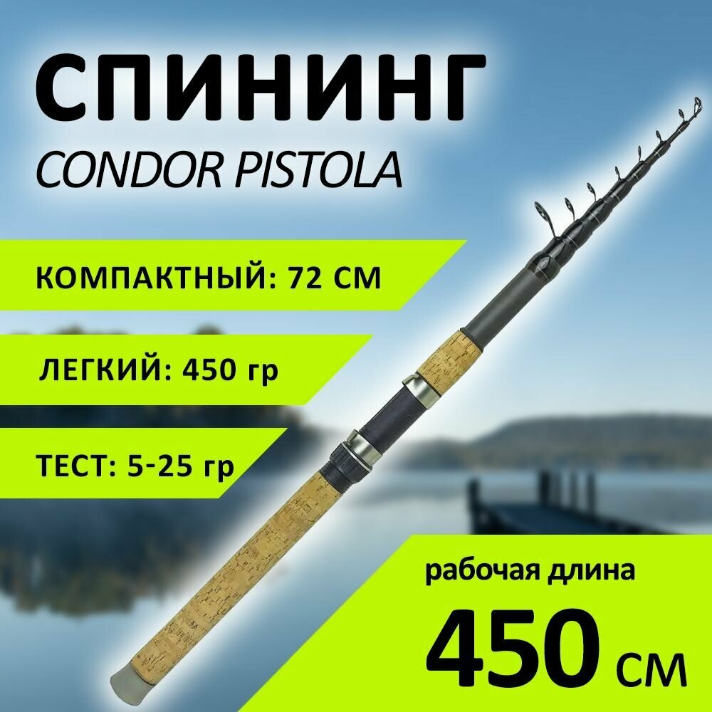 Спиннинг Condor Pistola длина 4.50 м, тест 5-25 гр стеклопластик, телескопический