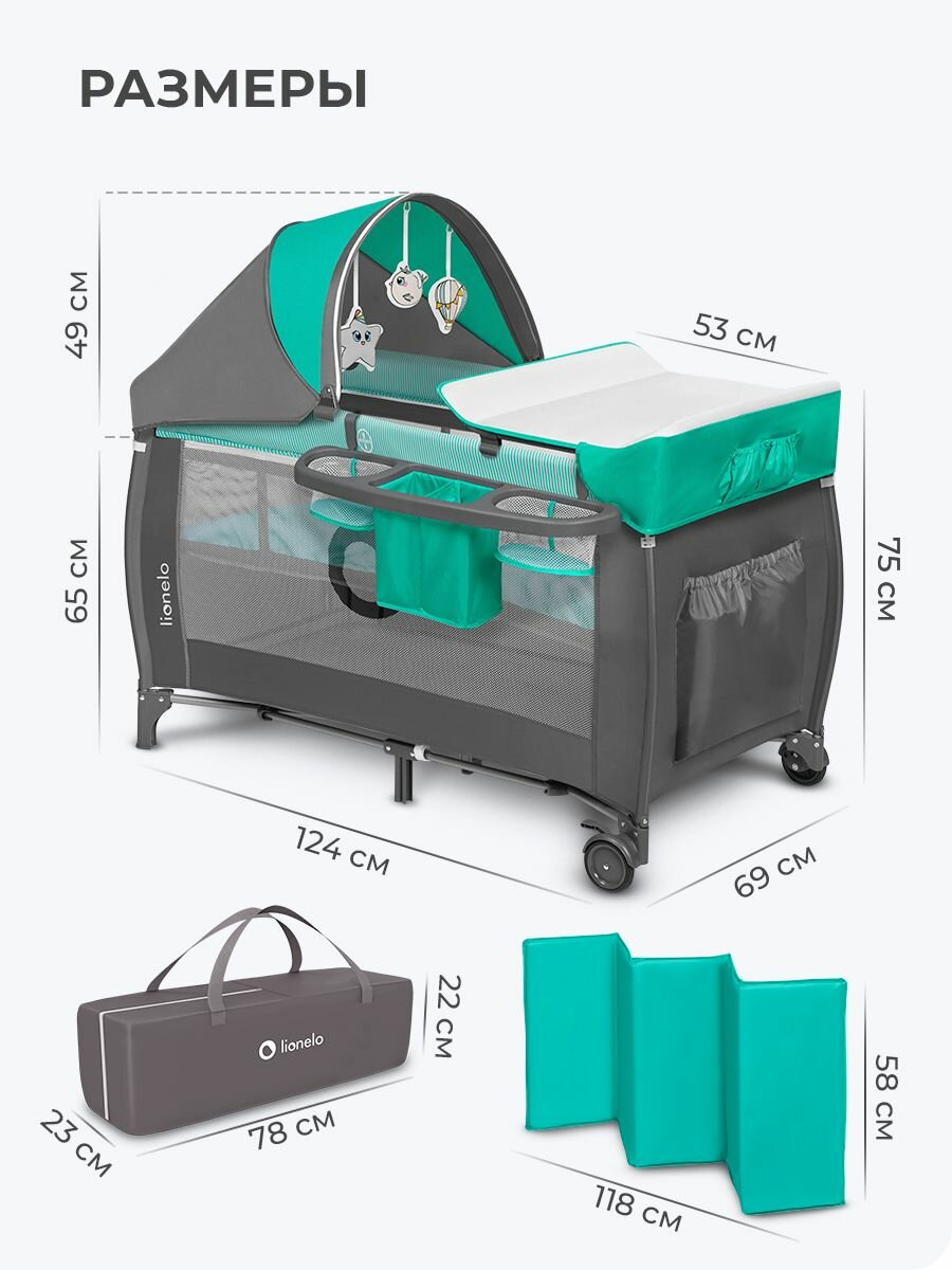 Манеж - кровать Lionelo LO-SVEN PLUS Turquoise с музыкальным блоком