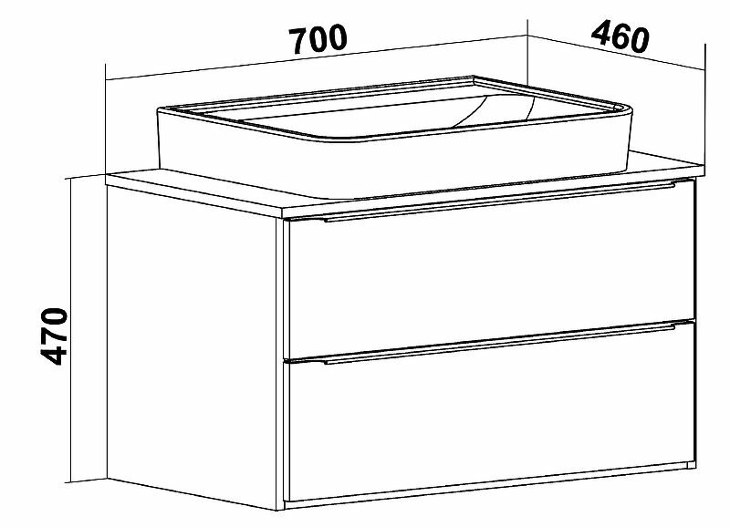 | Комплектация | 1 тумба под раковину, 1 умывальник Moduo 50 square, 2 ящика, 2 ручки, 2 навеса |