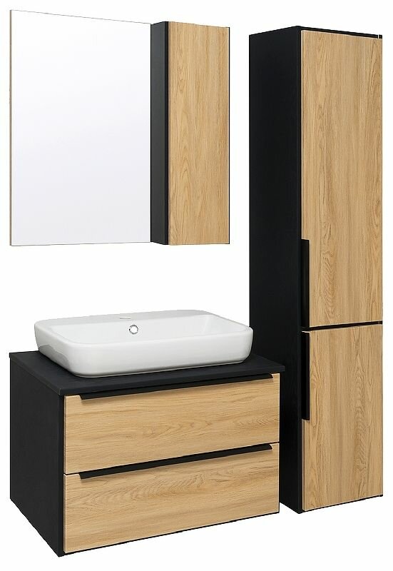 Тумба RUNO Мальта 70 дуб/черный, под умывальник Moduo Square 50/Гамма 56 00-00001097