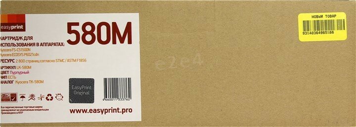 Картридж EasyPrint LK-580M, пурпурный, 2800 страниц, совместимый для Kyocera FS-C5150DN/ECOSYS P6021