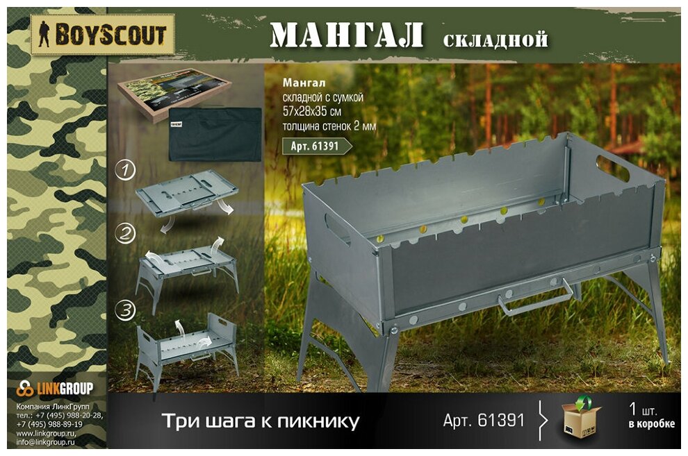 Ниже Вы можете прочитать отзывы на Складной мангал BOYSCOUT 1 61391, ознакомится с подробными характеристиками, посмотреть интересные обзоры и фотографии на Складной мангал BOYSCOUT 1 61391.
