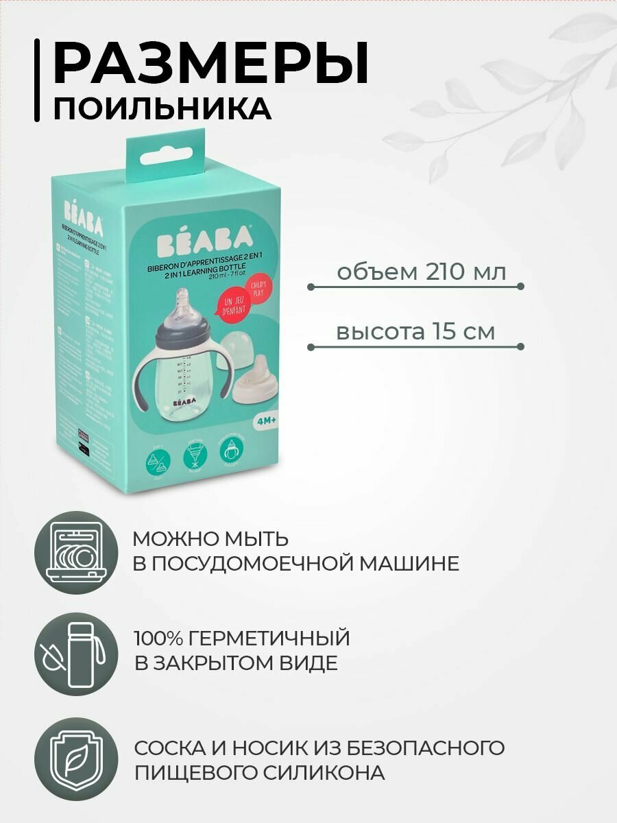 Поильник детский BEABA 210 мл. с двумя насадками в комплекте, поильник непроливайка с соской и силиконовым носиком, бутылочка для кормления