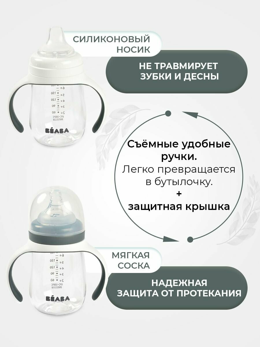 BEABA поильник детский 210 мл. с двумя насадками в комплекте, поильник непроливайка с соской и силиконовым носиком, бутылочка для кормления
