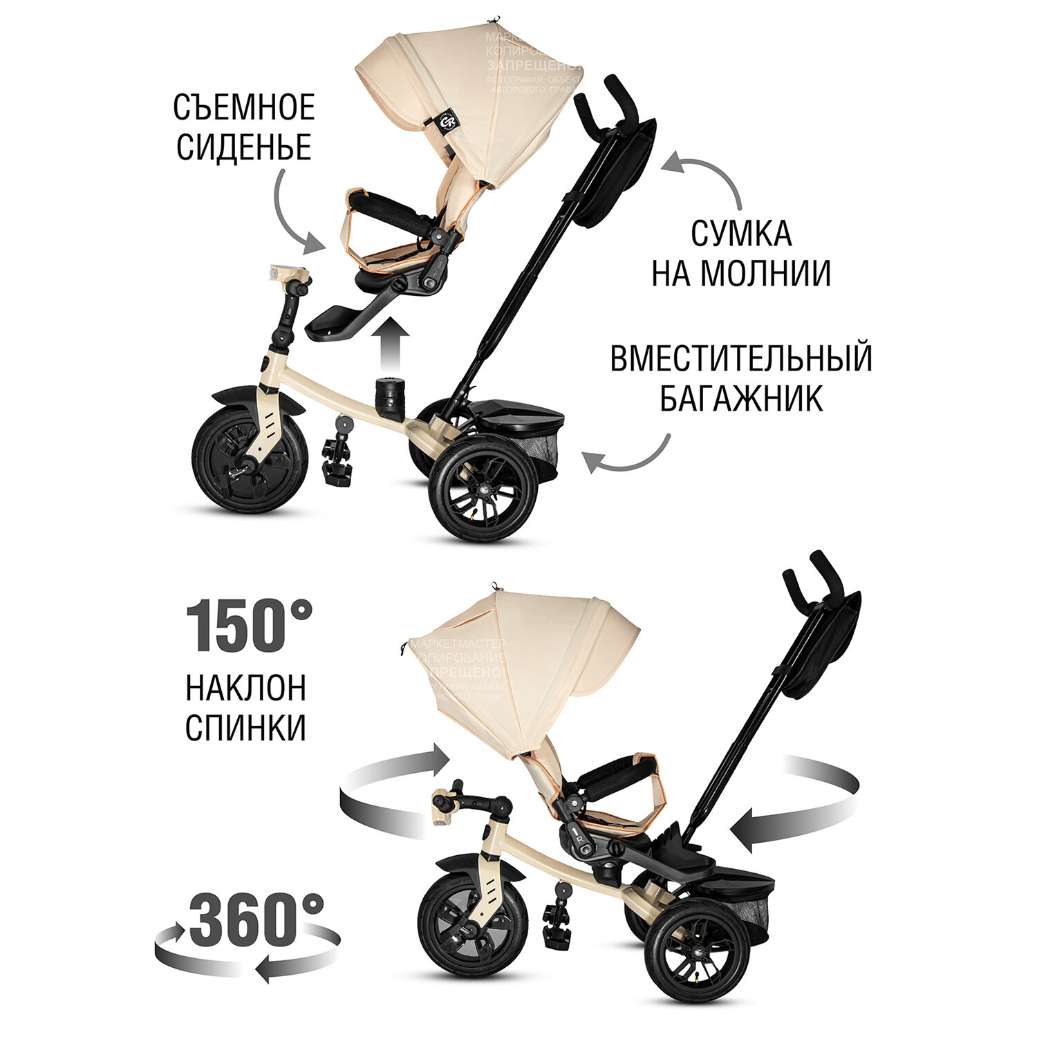 Велосипед детский трехколесный ТМ CITY-RIDE LUNAR, пятиугольная рама, складная крыша, надувные колеса 12"/10", поворот сиденья, CR-B3-10CM
