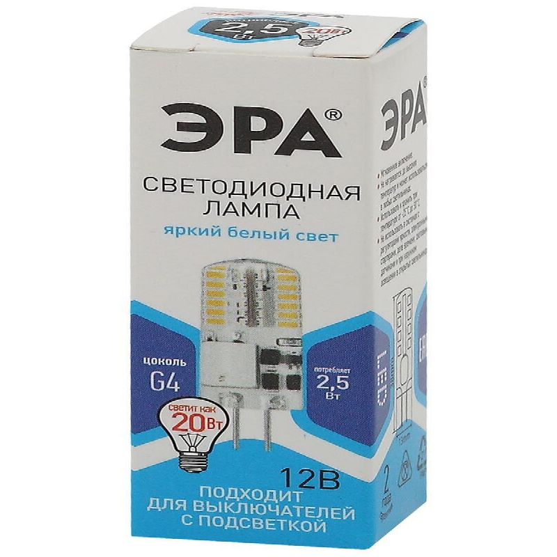 Лампа светодиодная G4 Эра 2.5W 12V 840 холодный свет Б0049090