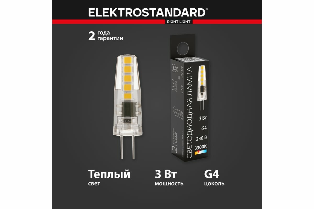 Лампа светодиодная G4 Elektrostandard BLG409, 3 Вт, 220В, 360°, 3300K, JC