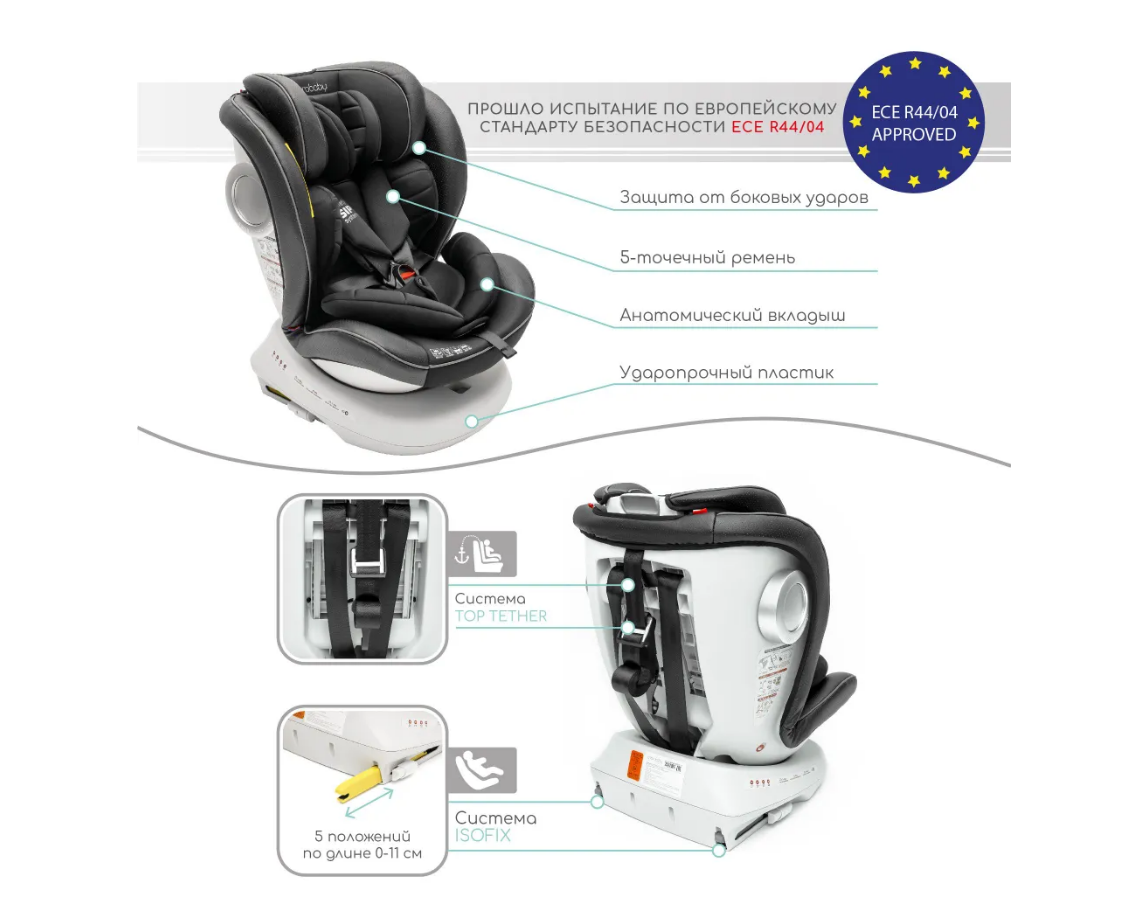 Автокресло детское AMAROBABY CHAMPION, Isofix класс D, группа 0+/1/2/3, (графит)