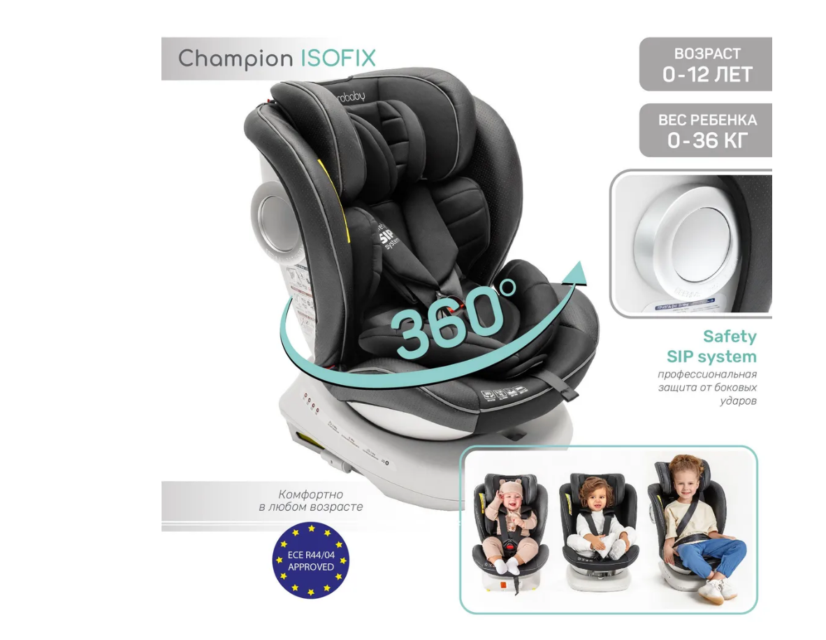 Автокресло детское AMAROBABY CHAMPION, Isofix класс D, группа 0+/1/2/3, (серый)