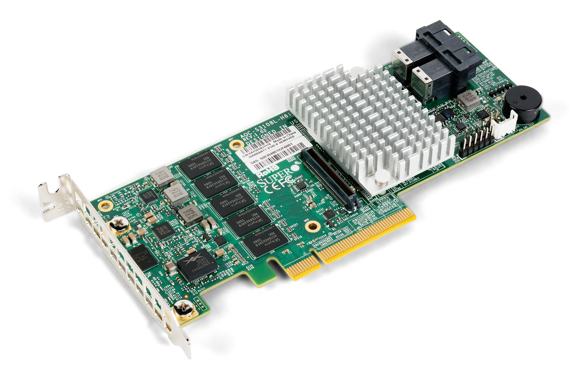 Supermicro AOC-S3108L-H8IR 8-ports/12Gb/s/240 SATA/SAS drives/RAID (0/1/5/6/10/50/60)/2GB DDR3 on-card cache/SFF-8643 MiniSAS HD