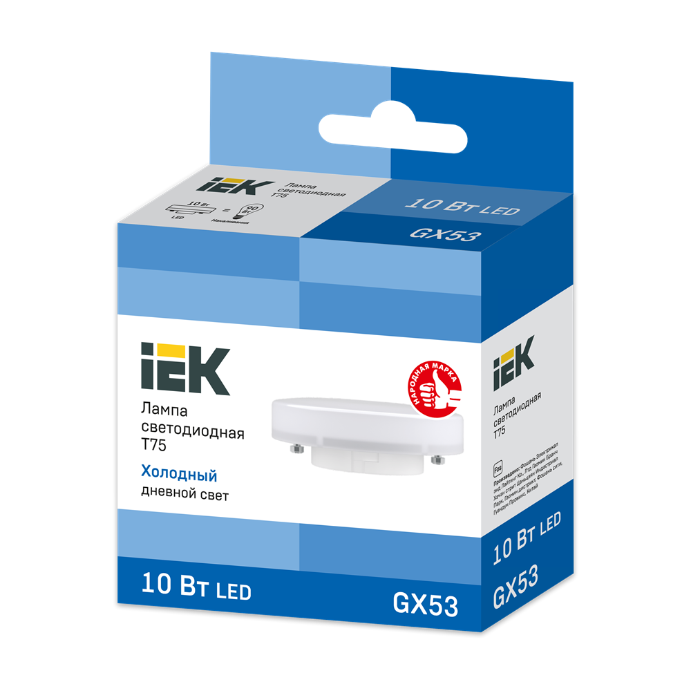 IEK GX53 св/д 10W(900lm) 6500К 6K 75х24 LLE-T80-10-230-65-GX53