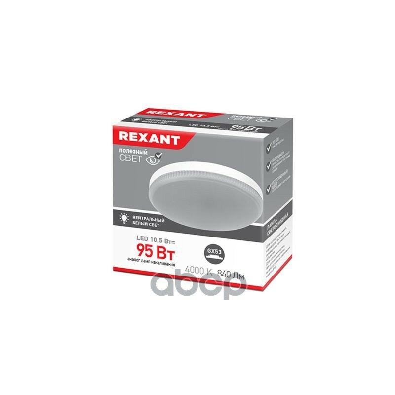 Лампочка Rexant Gx53, 10.5 Вт, 840 Лм (=95 Вт), 4000 K (нейтральный свет), упаковка 10 шт.
