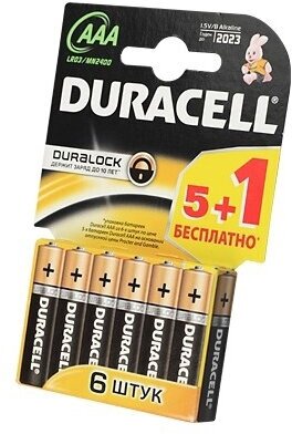 Duracell Батарейка алкалиновая AAA LR03/MN2400 Basic 1.5v (блистер 6 шт.)