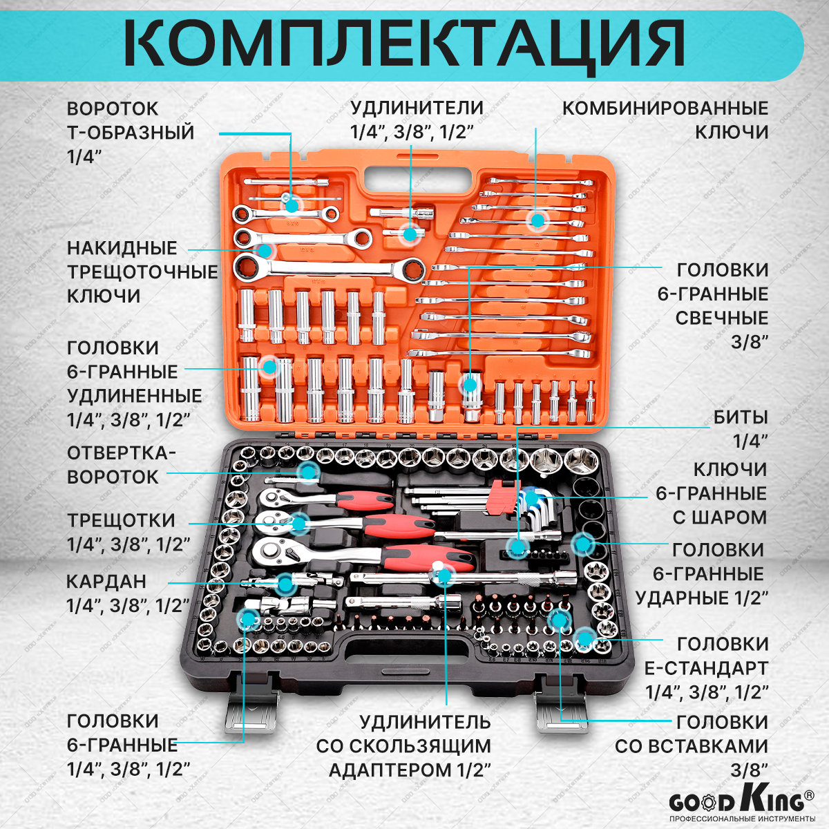 Купить K-10150 Goodking Набор инструментов 150 предметов 1/4 3/8 1/2 трещотка K-10150 .