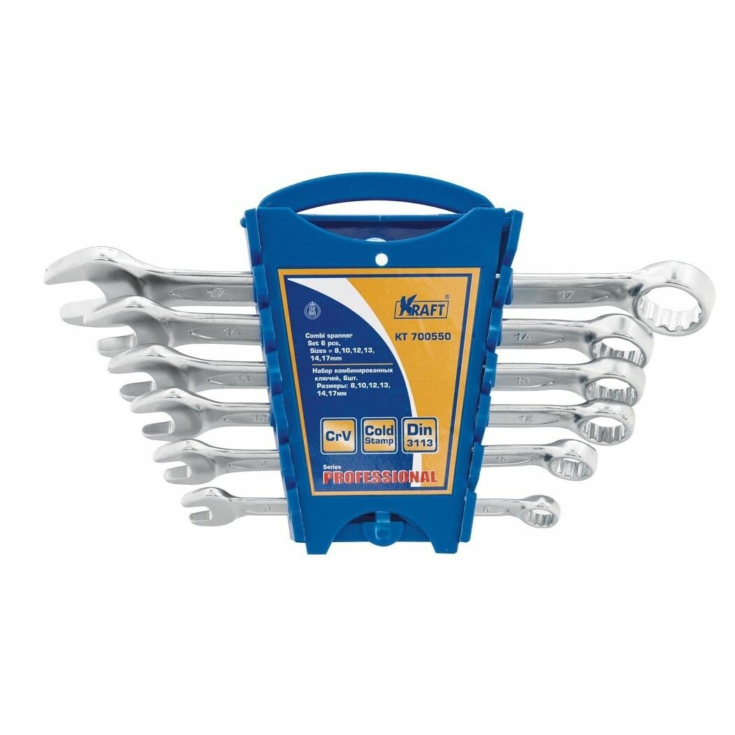 Набор комбинированных ключей 8шт: 6 8 10 12 13 14 17 19мм пластиковый держатель KRAFT KT 700552
