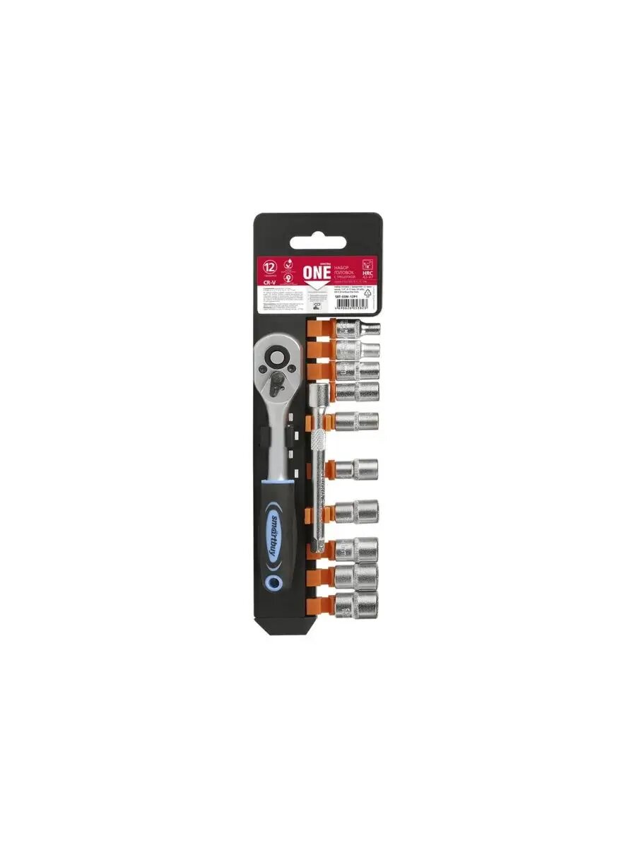 Набор головок с трещоткой 12 предметов, 1/4", 4-13 мм, 24 зуба, CR-V, Smartbuy One Tools