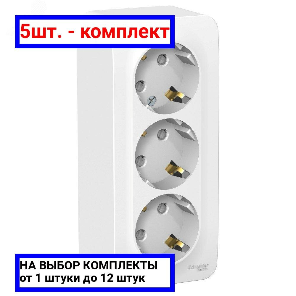 Сохранить5шт. - Розетка BLANCA наружная трехпостовая, с заземлением, со шторками, с изолирующей пластиной, 16А, 250В, белый / Systeme Electric; арт. BLNRA011311; оригинал / - комплект 5шт интересное: