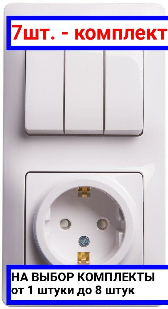 Сохранить7шт. - Блок: розетка с заземлением со шторками + выключатель трехклавишный белый / Systeme Electric; арт. GSL000178; оригинал / - комплект 7шт интересное: