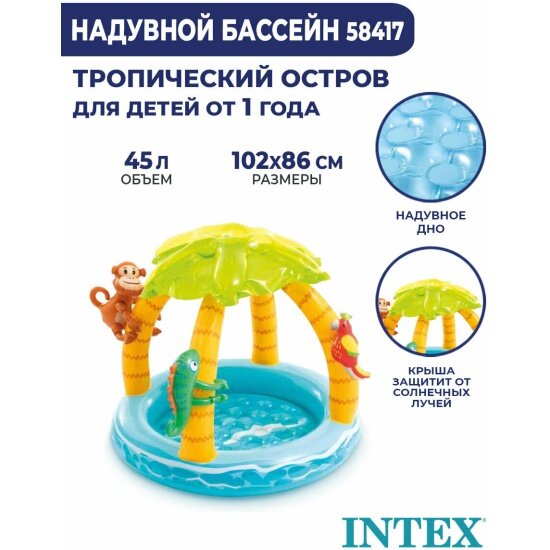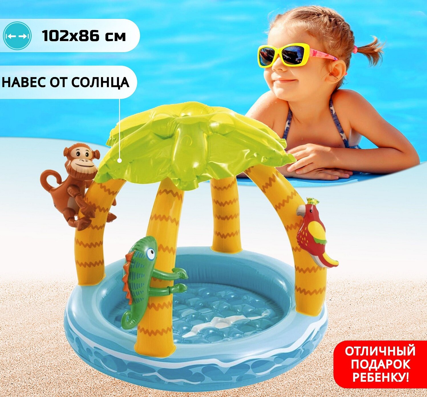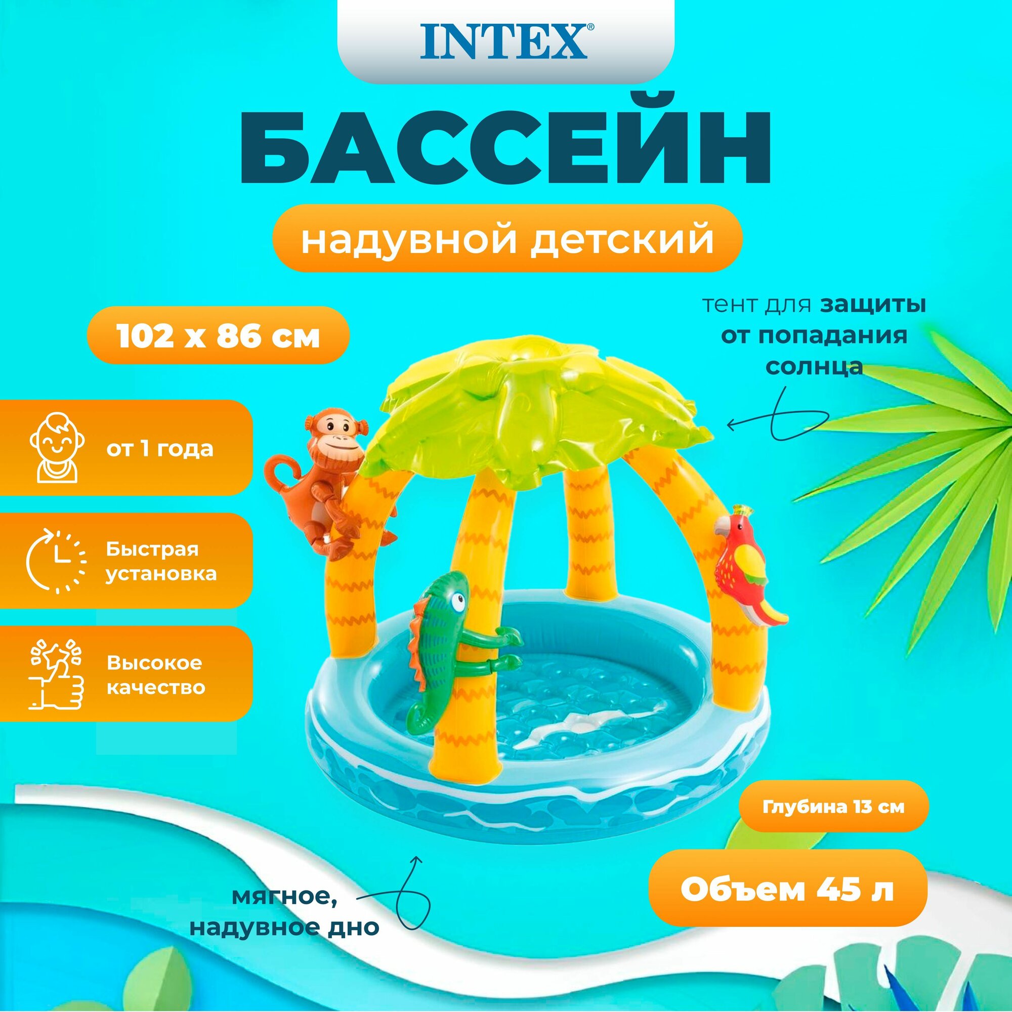 Детский надувной бассейн с навесом intex Тропический остров 102х86см, 1-3 лет 58417/Бассейн для дачи