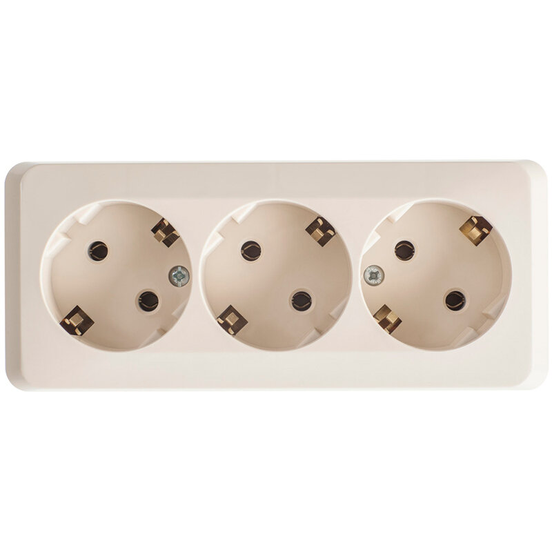 Розетка тройная Systeme (Schneider) Electric Этюд, накладная, б/з, кремовая
