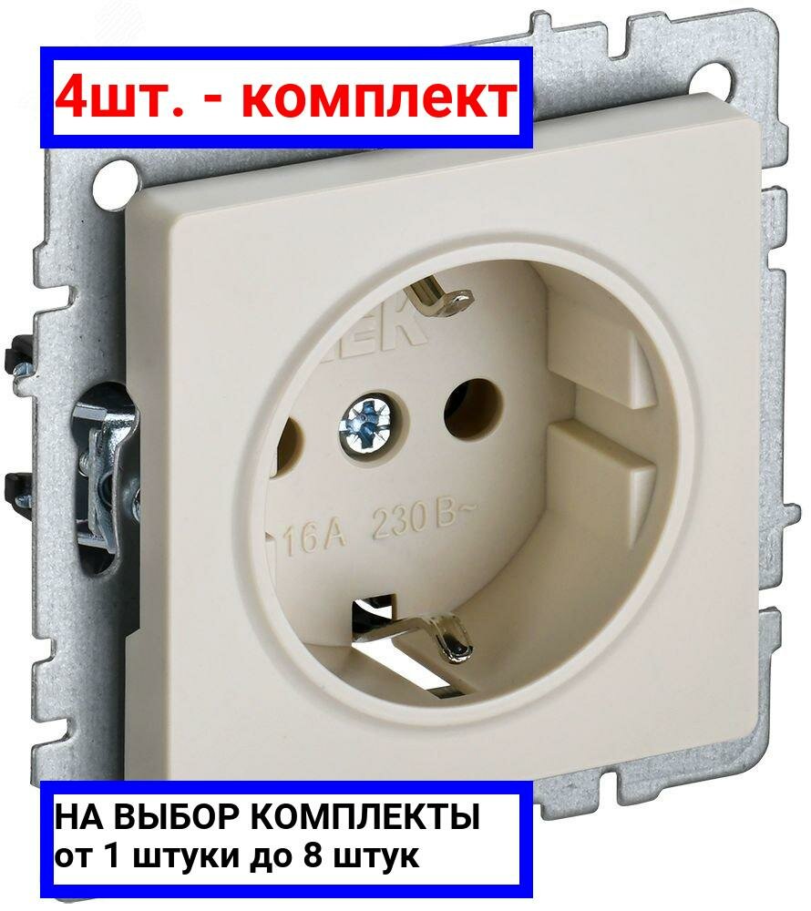 Сохранить4шт. - BRITE Розетка с заземлением с защитными шторками 16А РС14-1-0-БрКр бежевый / IEK; арт. BR-R14-16-K10; оригинал / - комплект 4шт интересное: