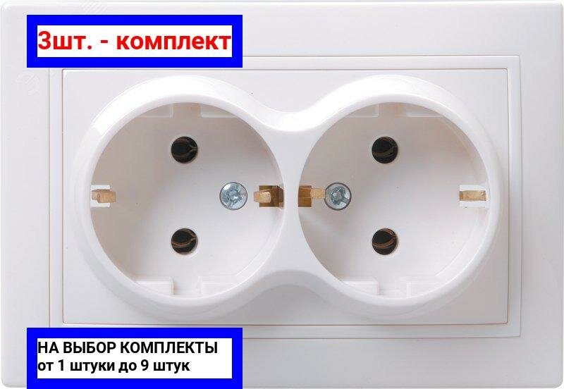 Купить 3шт. - Кварта Розетка двойная с заземлением без шторок белая в сборе / IEK; арт. ERK24-K01-16-DM; оригинал / - комплект 3шт
