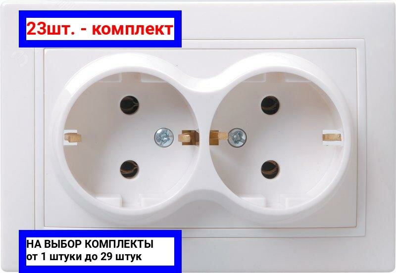 Сохранить23шт. - Кварта Розетка двойная с заземлением без шторок белая в сборе / IEK; арт. ERK24-K01-16-DM; оригинал / - комплект 23шт интересное: