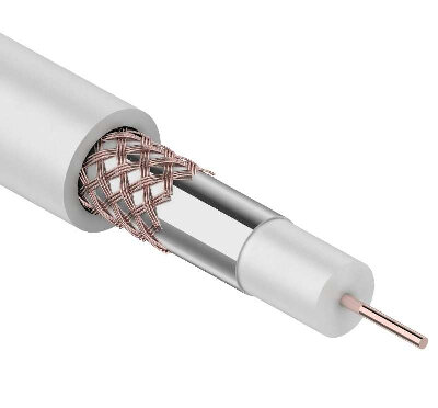 Коаксиальный кабель REXANT SAT 703B, 75 Ом, Cu/Al/Cu, 75%, бухта 20 м, белый 01-2431-20
