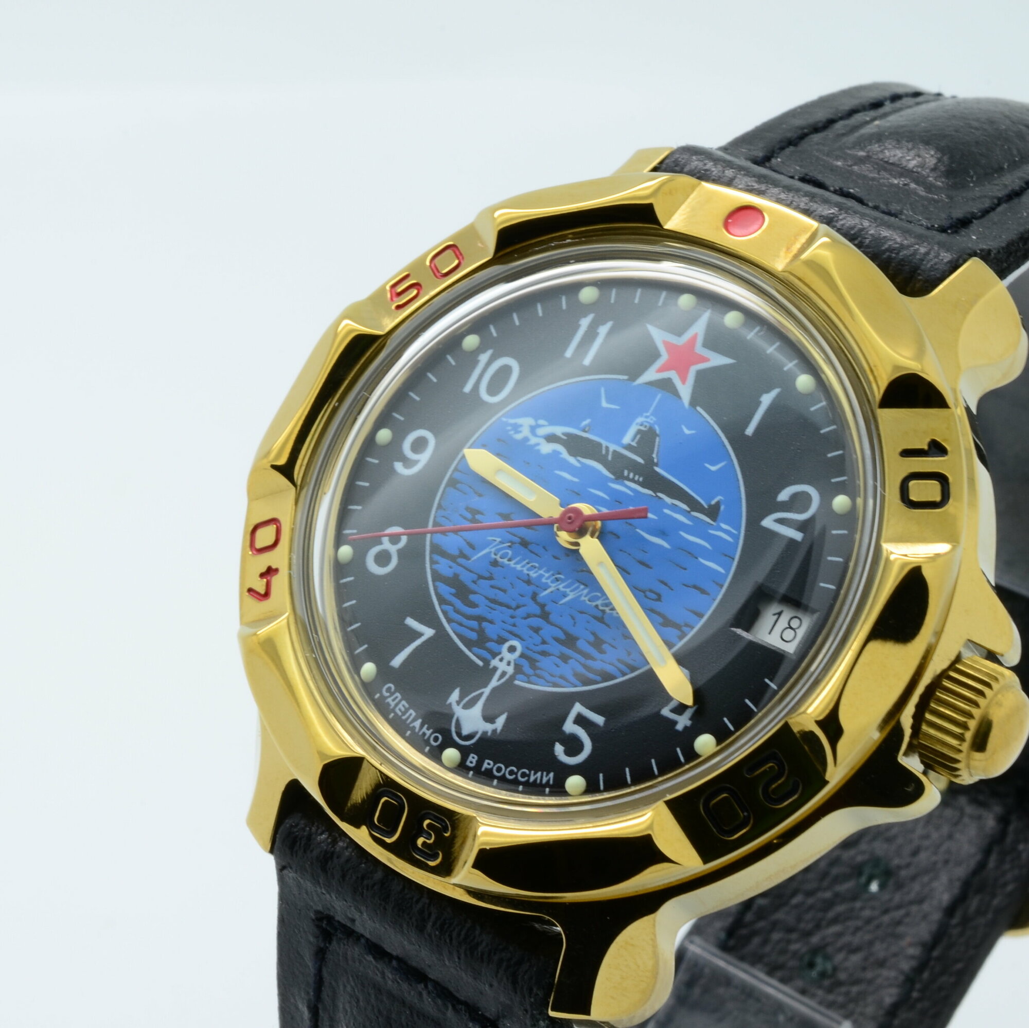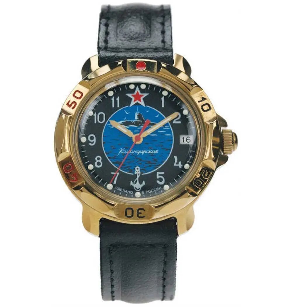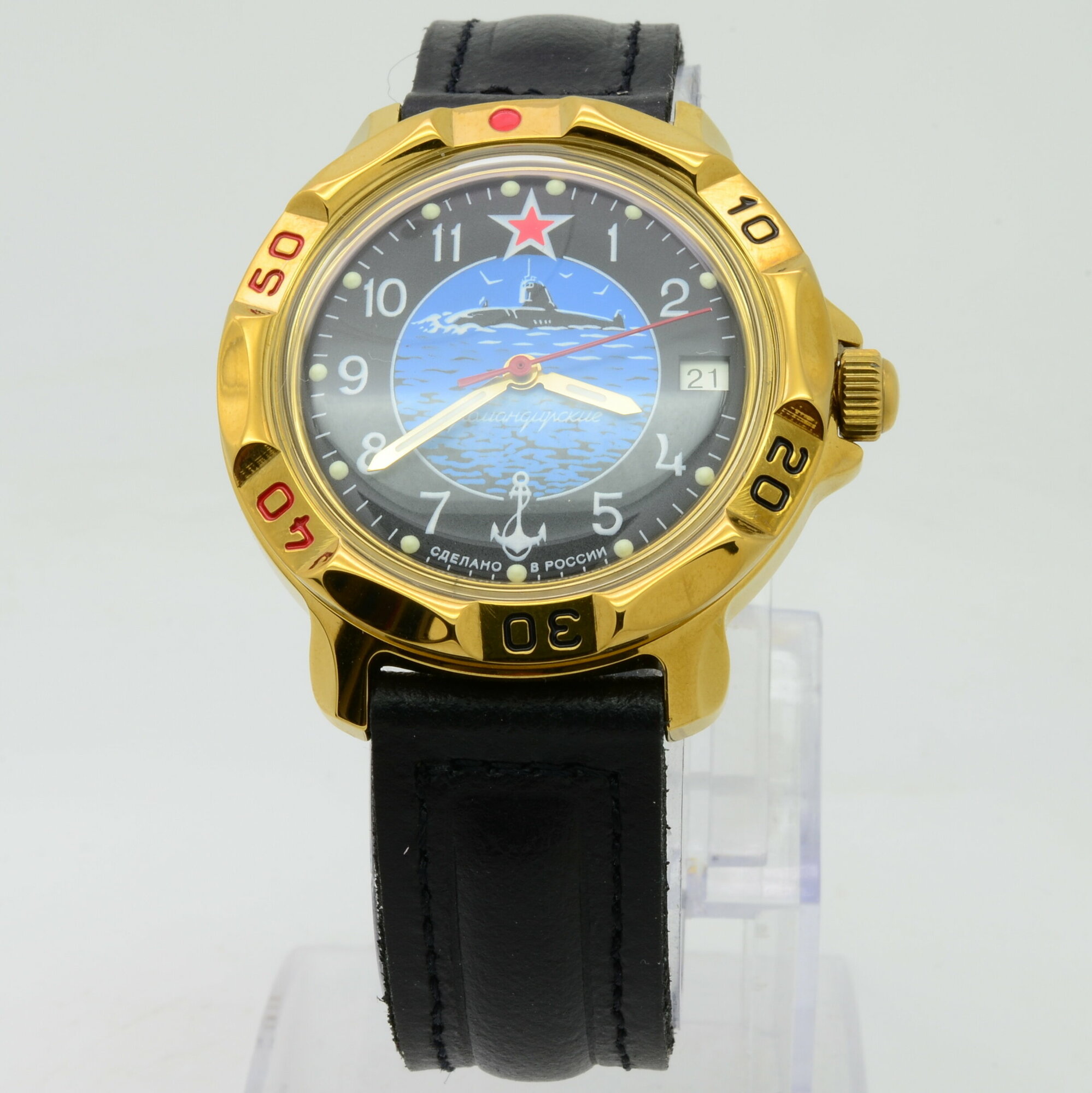 Часы наручные мужские Восток Командирские 219163, натуральная кожа, черный