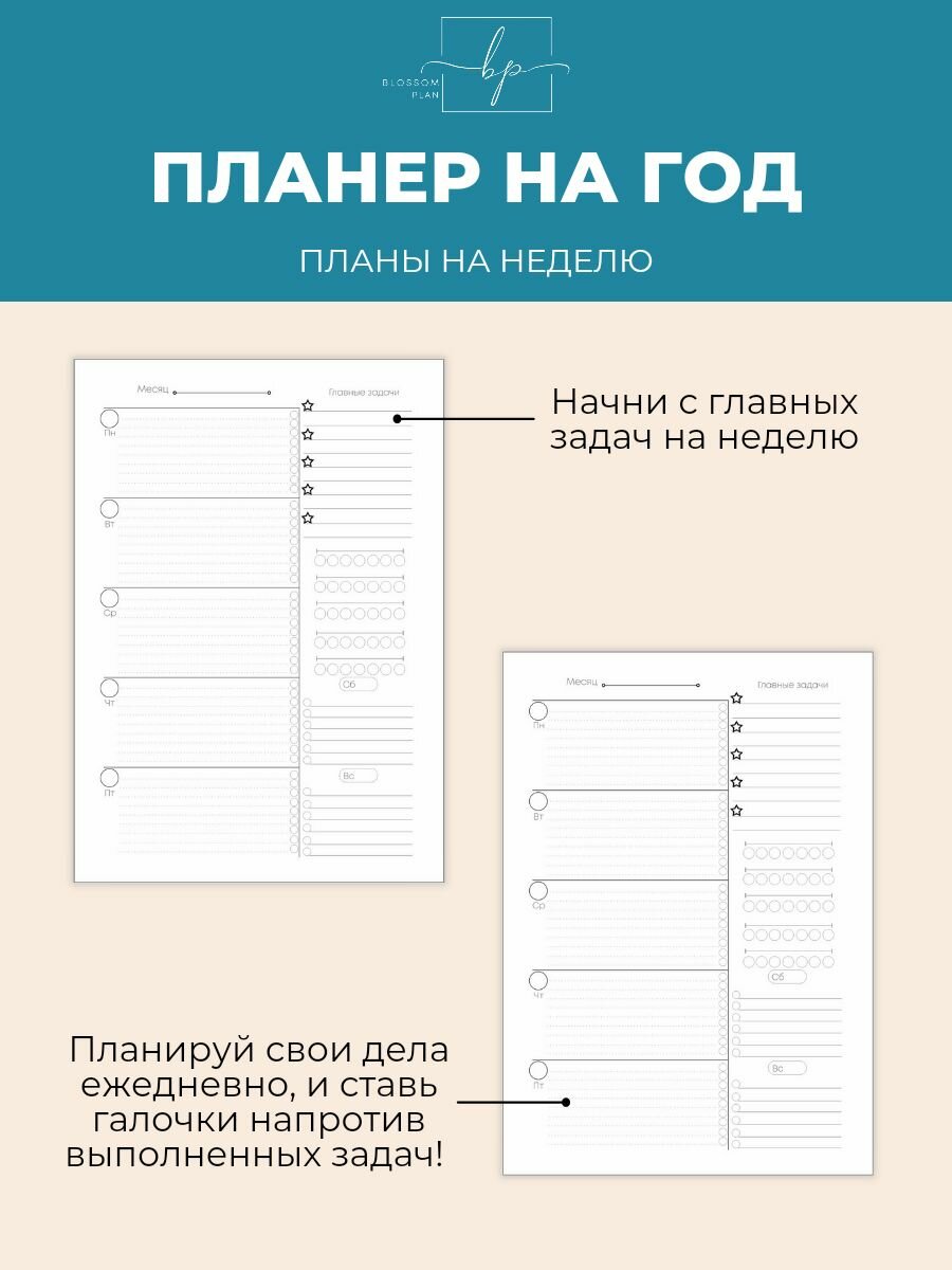 Еженедельник на год Планер блокнот BlossomPlan Топаз. Недатированный, А5, 122 страниц