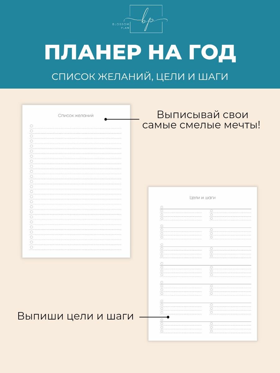 Авторский планер-блокнот еженедельник BlossomPlan С надписями. Недатированный, А5, 122 страницы
