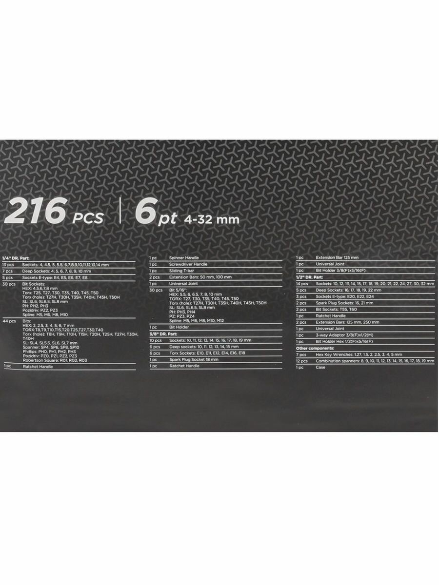 Набор Инструментов 216 Пр. 216 Пр: 1/4 Inch, 3/8 Inch, 1/2 Inch, 4-32 Мм, 6 Граней PATRON арт. P38841