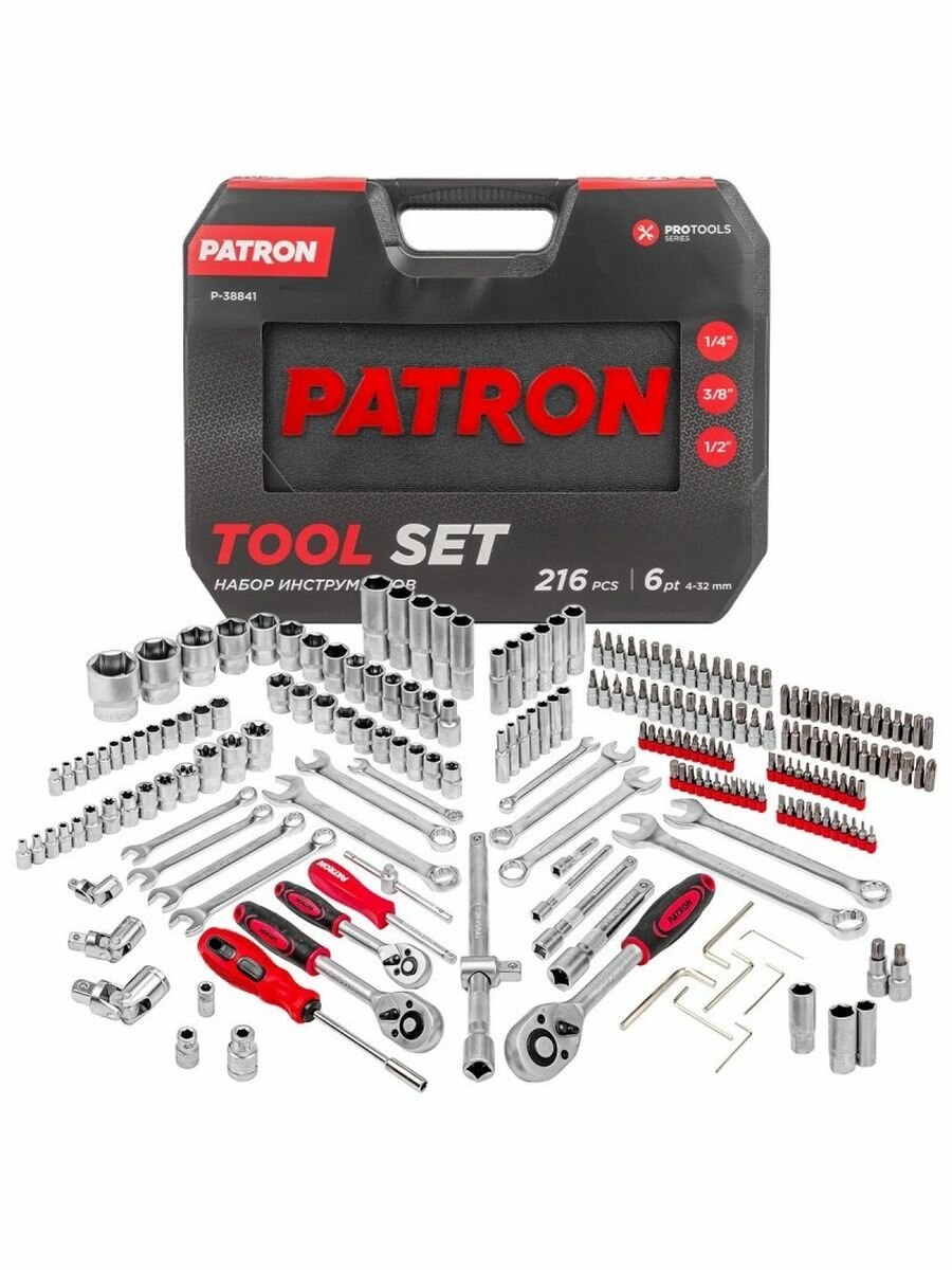 PATRON P38841 Набор инструментов 216 пр. 216 пр: 1/4 inch, 3/8 inch, 1/2 inch, 4-32 мм, 6 граней