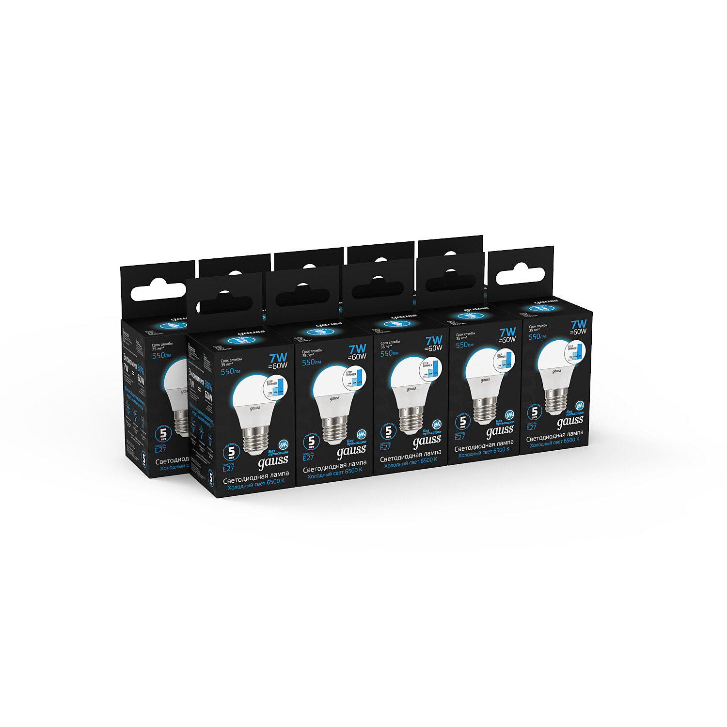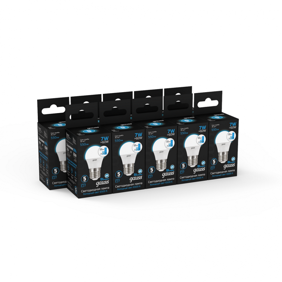 Gauss Лампа Шар 7W 550lm 6500K Е27 шаг. диммиров. LED 1/10/100 105102307-S интересное: